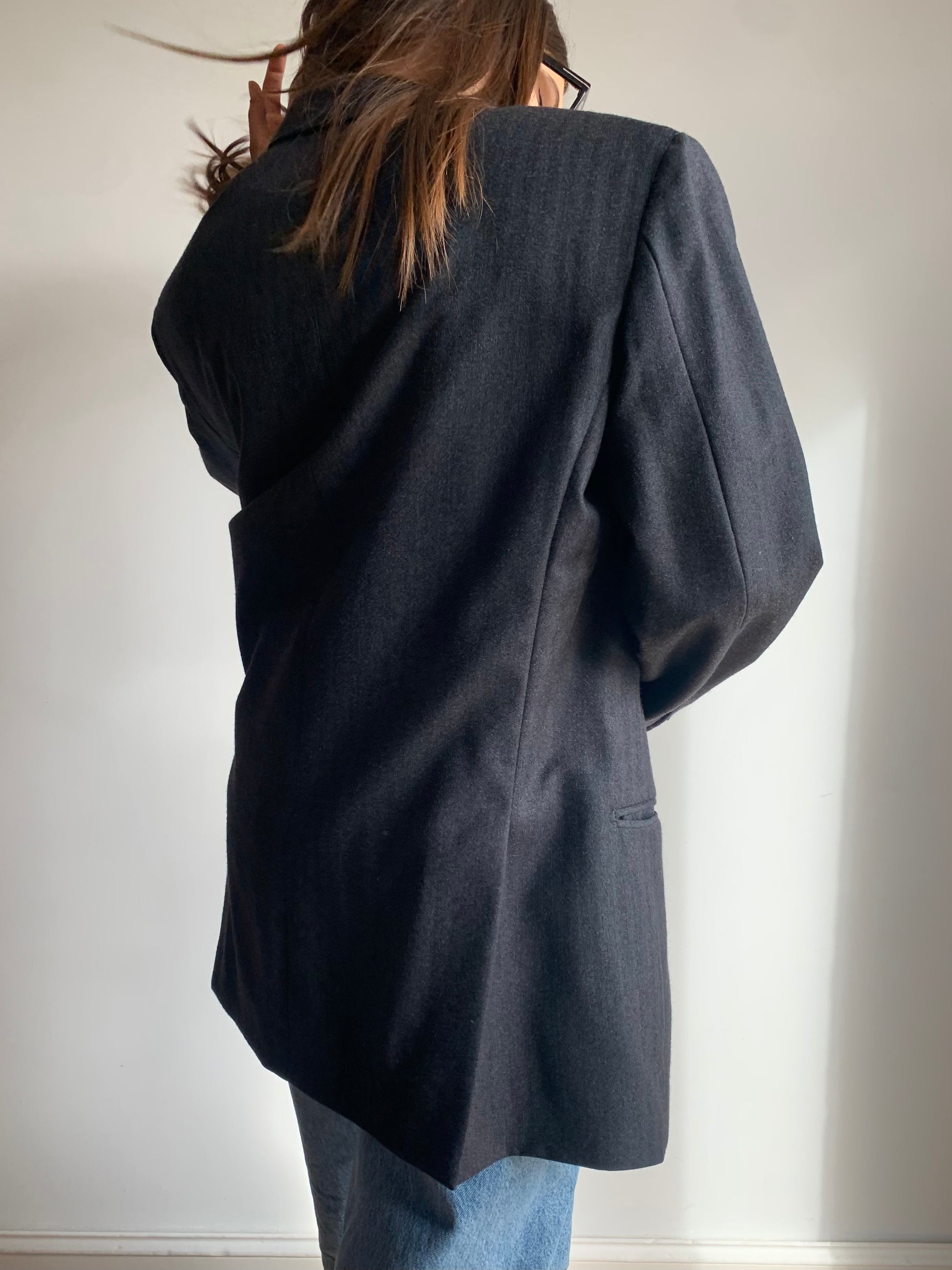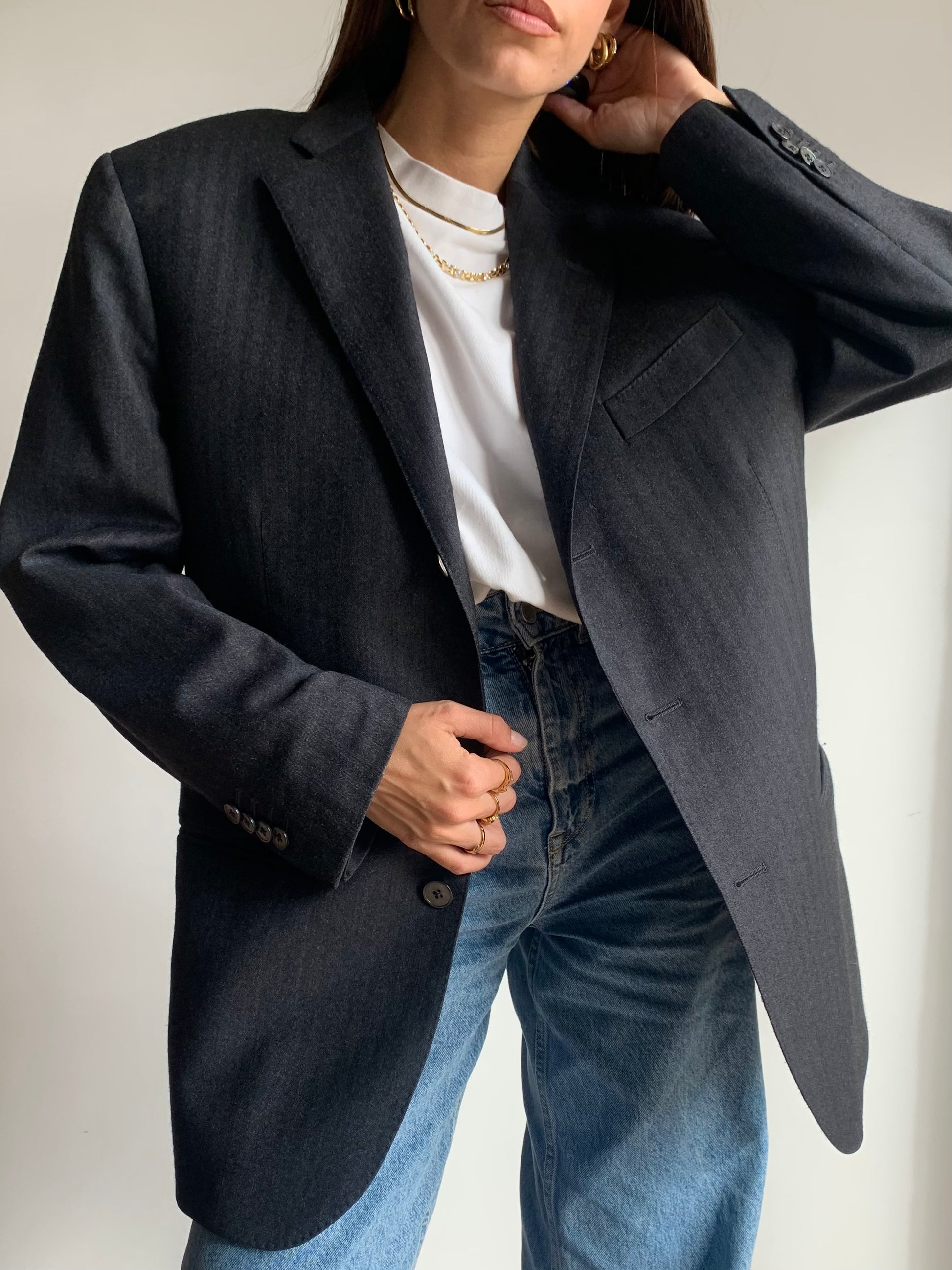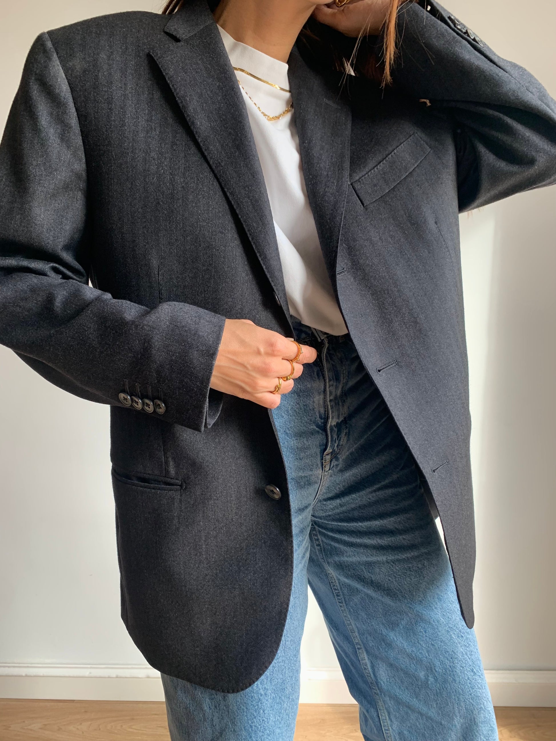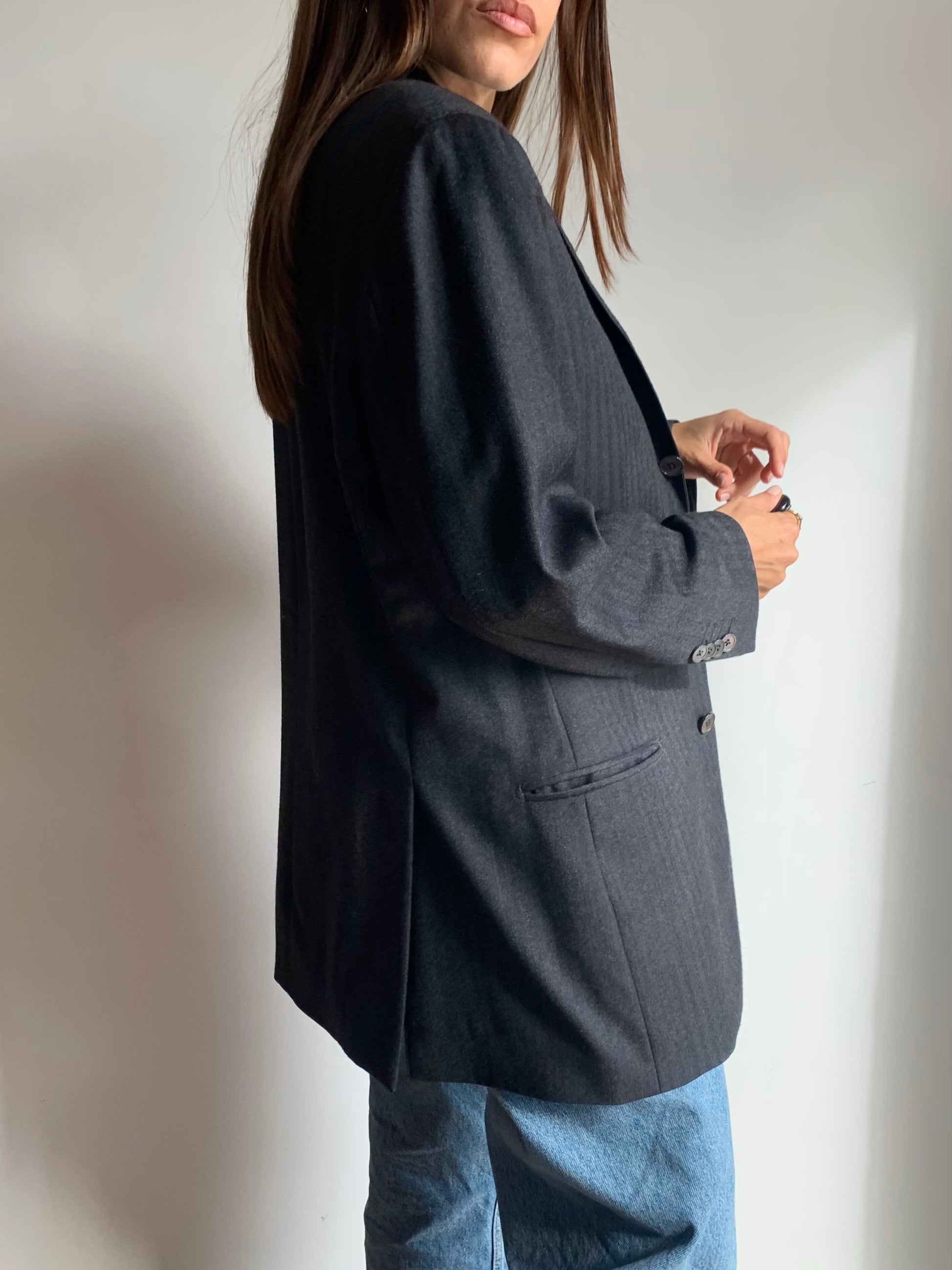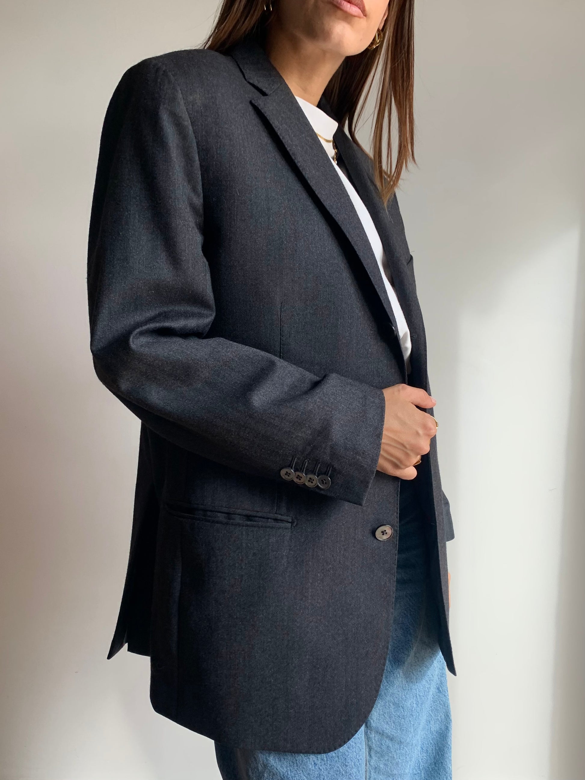 taglio monopetto, minimal grigio antracite con particolare trama del filato