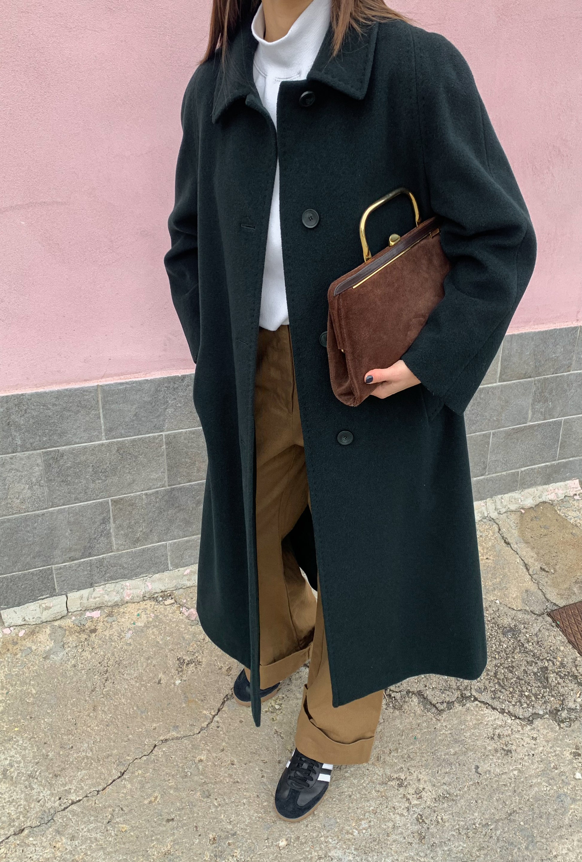 Dettagli: straordinario cappotto vintage di un bellissimo verde bottiglia