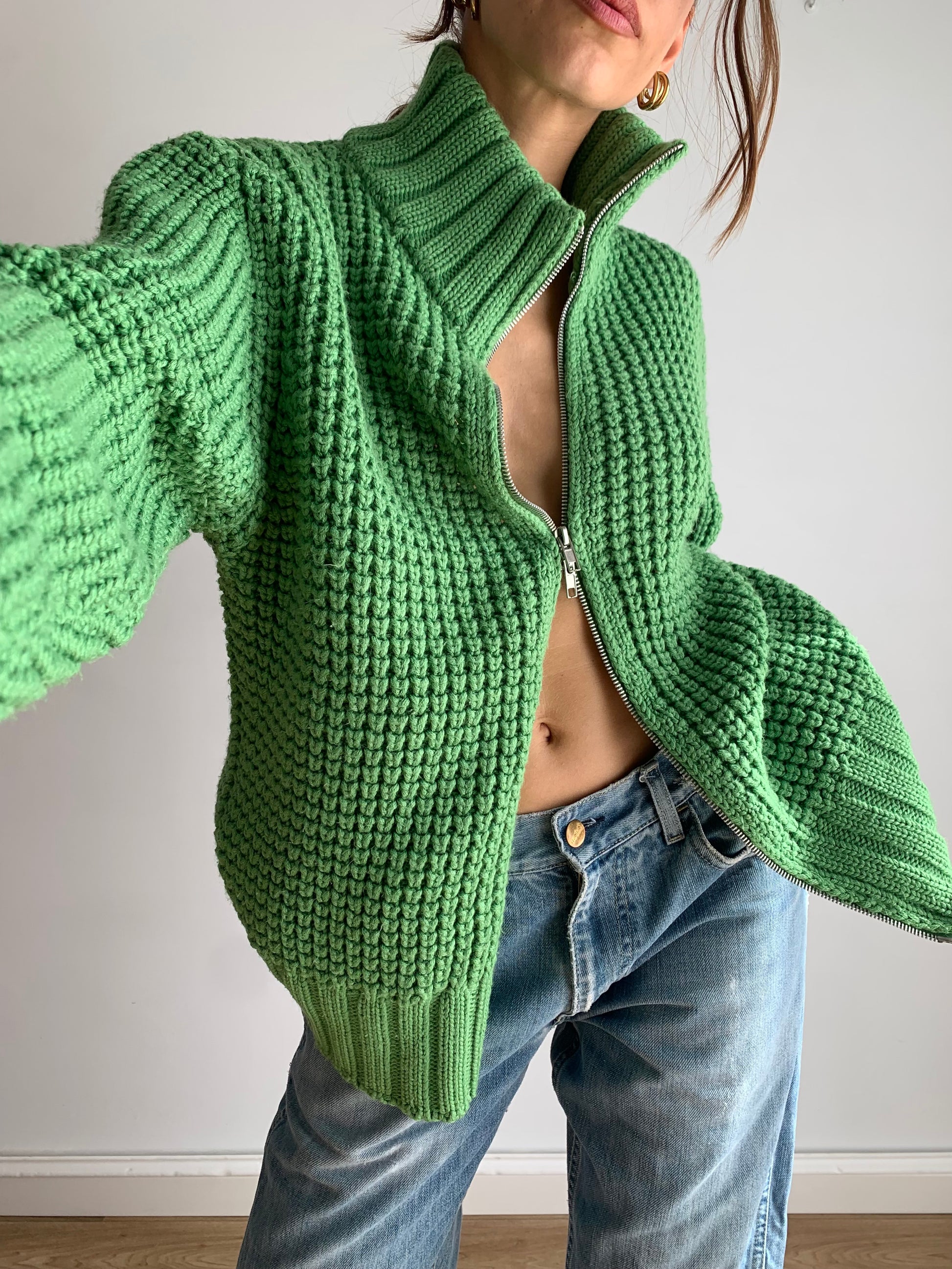 Dettagli: meraviglioso maglioncino/cardigan con chiusura zip color verde acceso