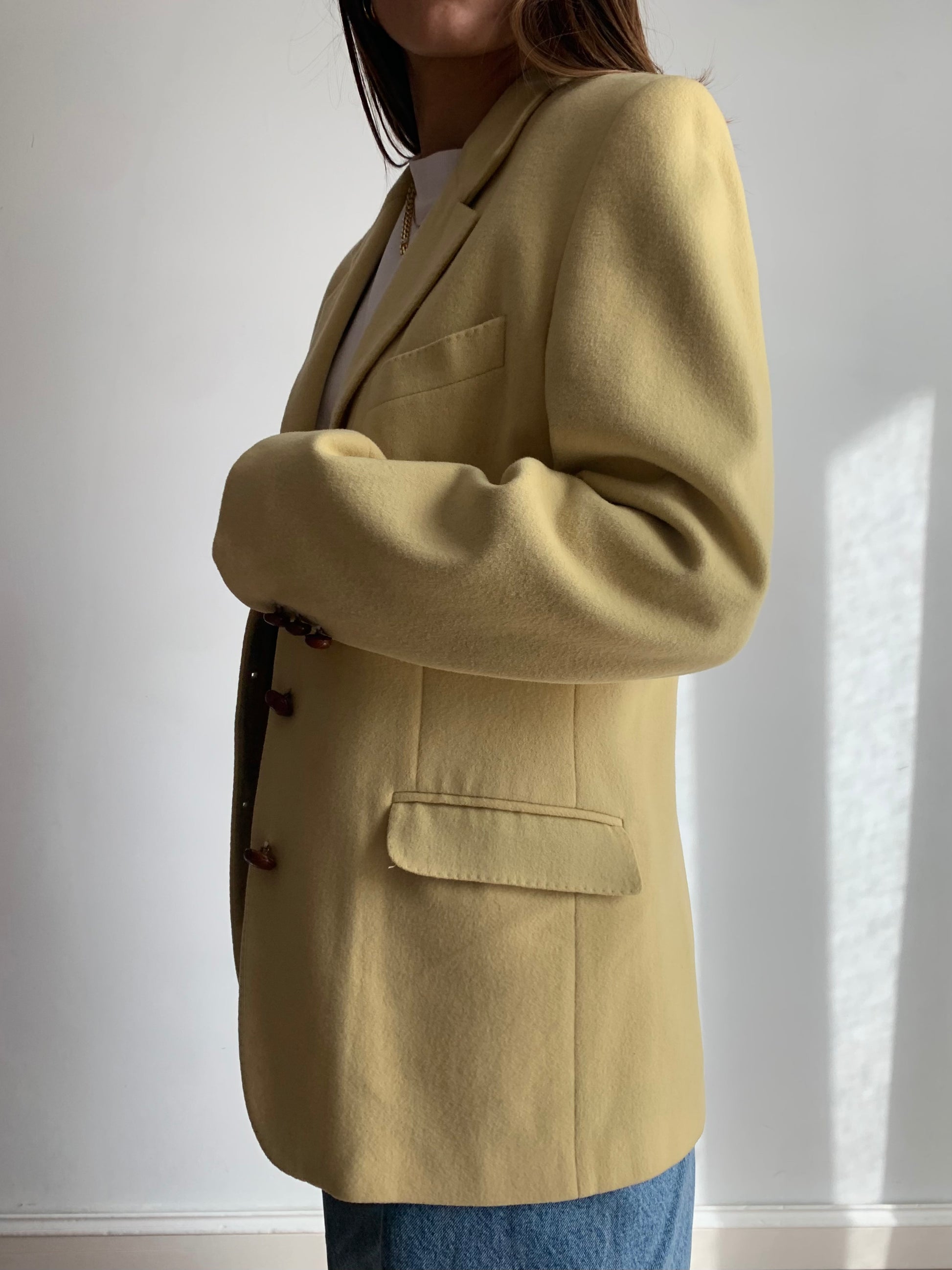 di un bellissimo giallo limone e bottoncini in cuoio a contrasto