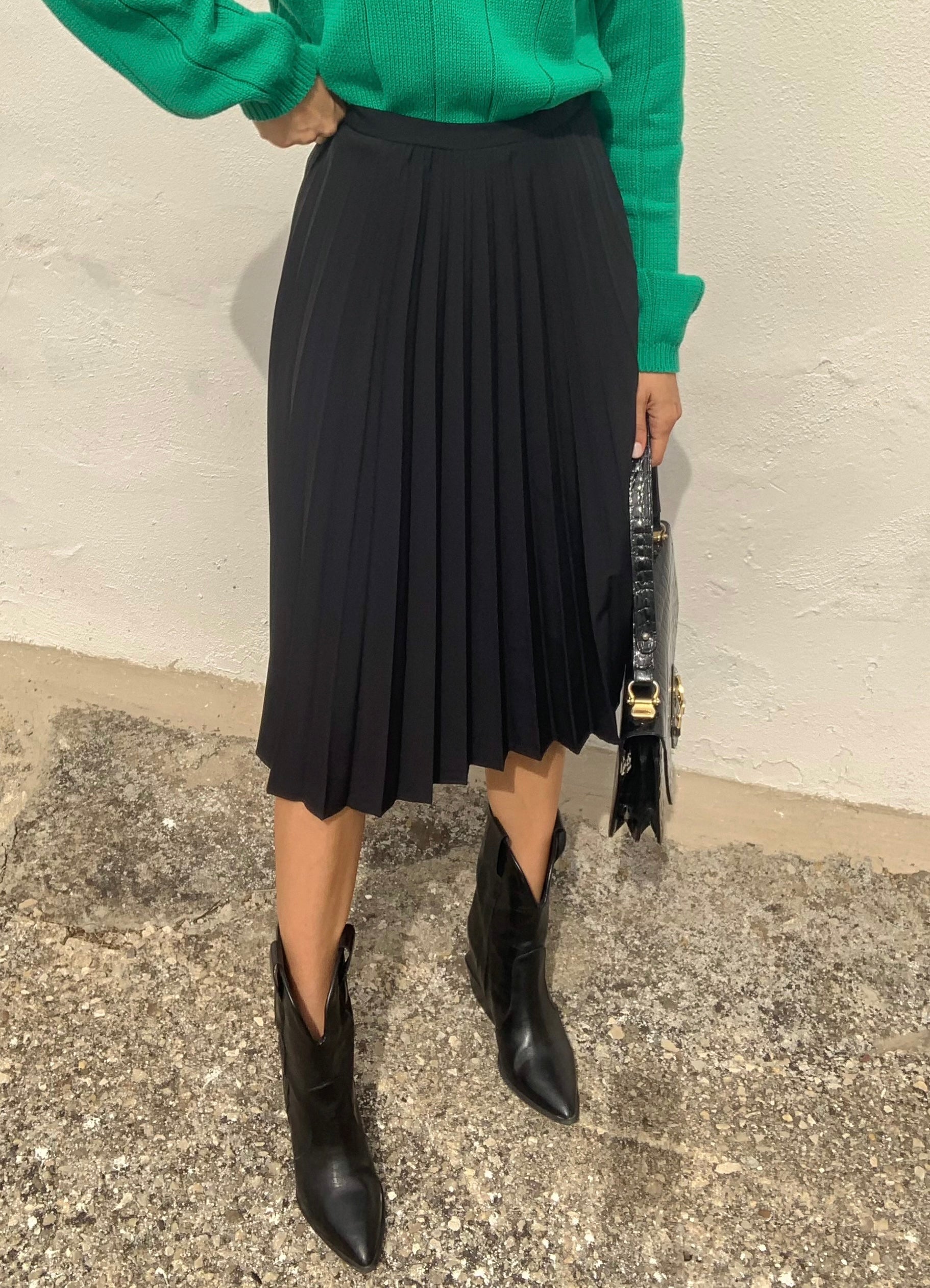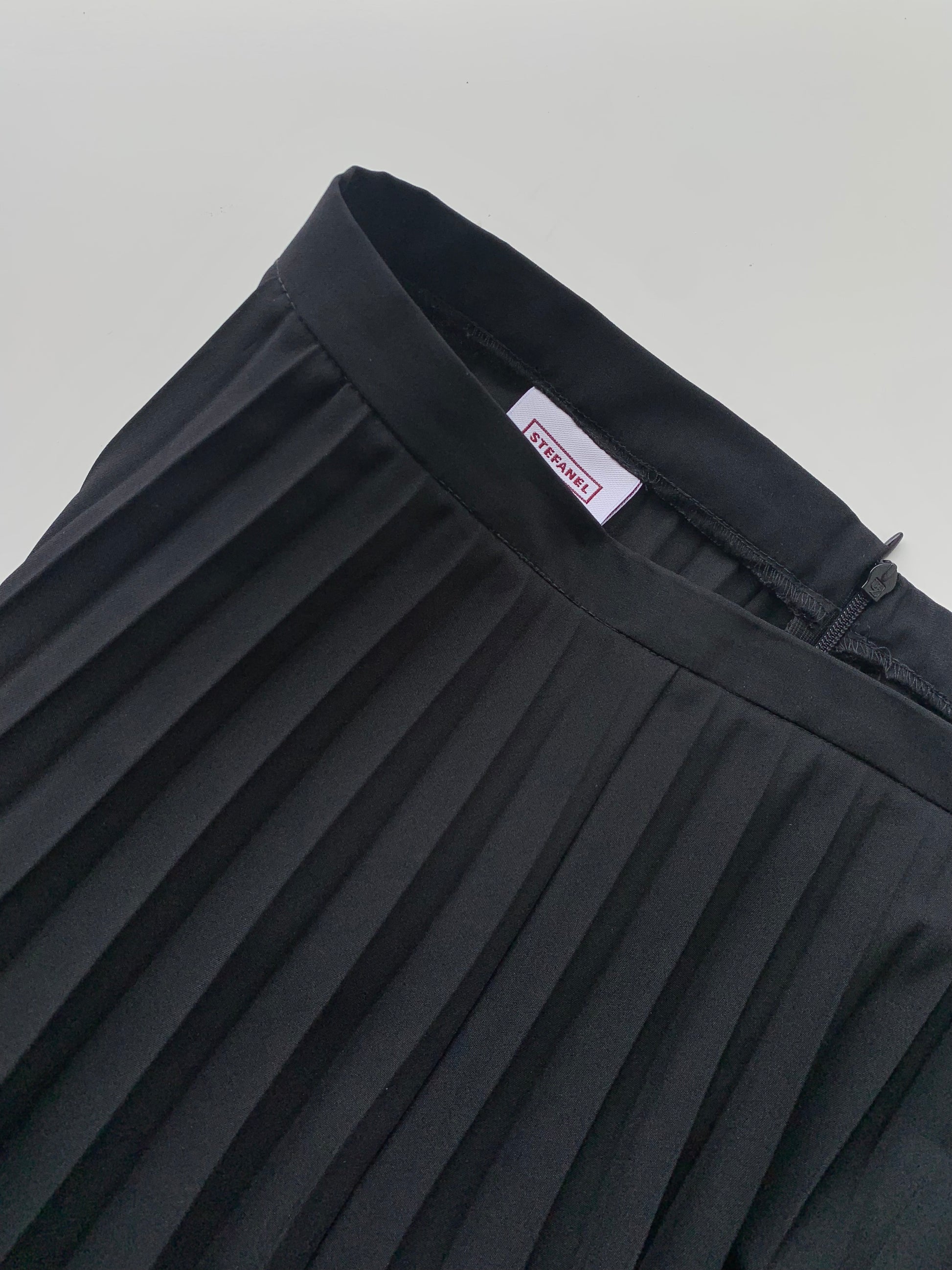 Dettagli: bellissima gonna vintage midi nera a pieghe in fresco di lana, sfoderata