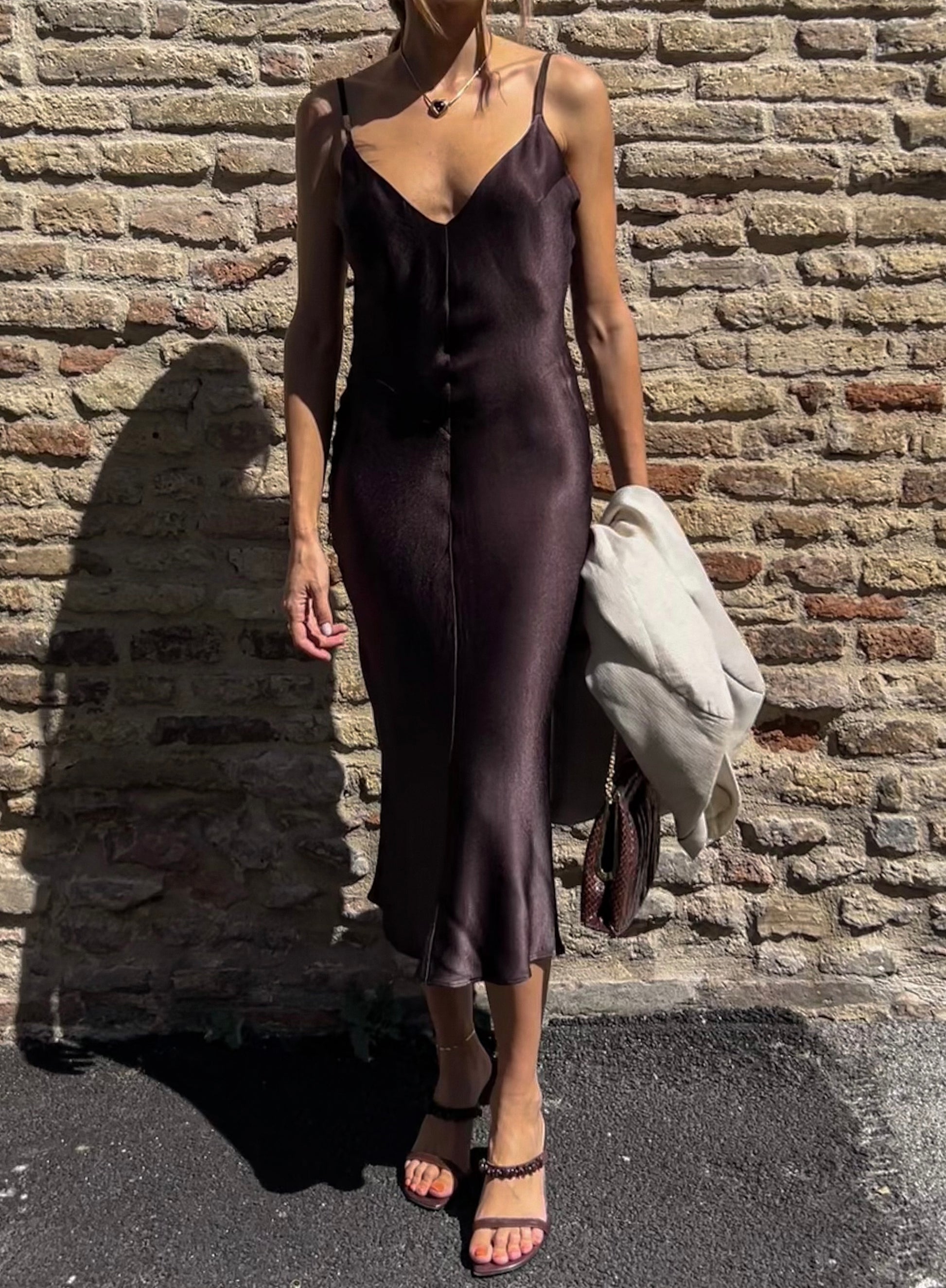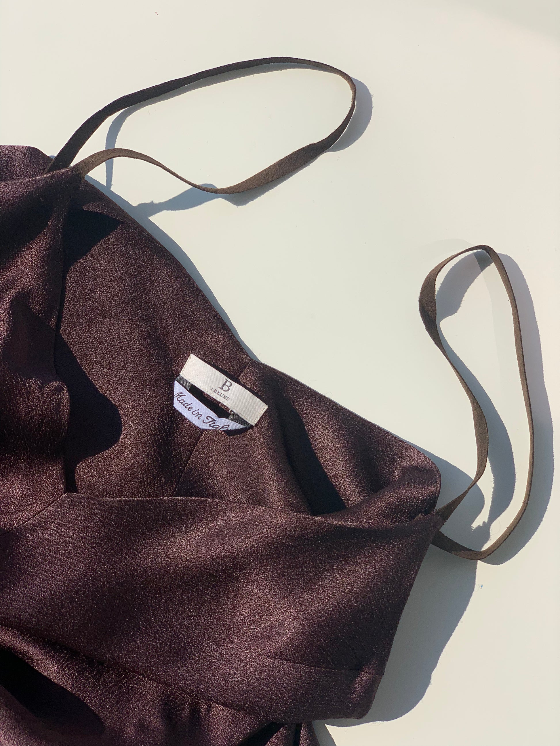 Dettagli: magnifico abito midi vintage di un bellissimo marrone cioccolato super luminoso