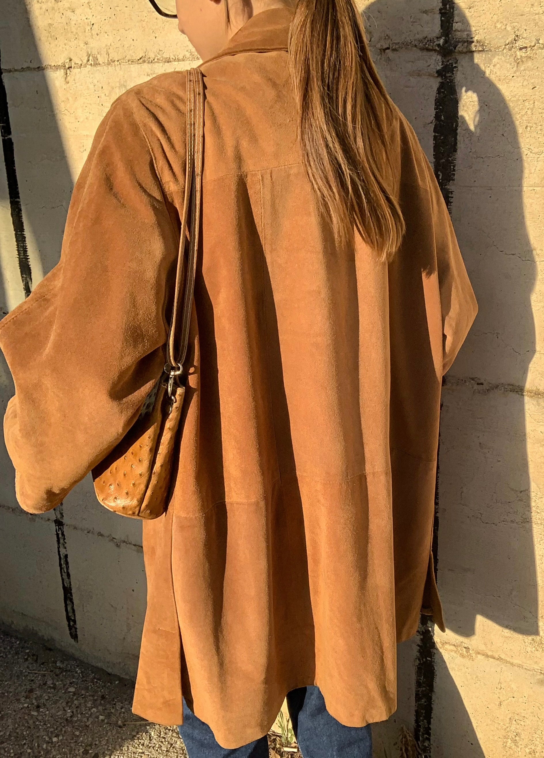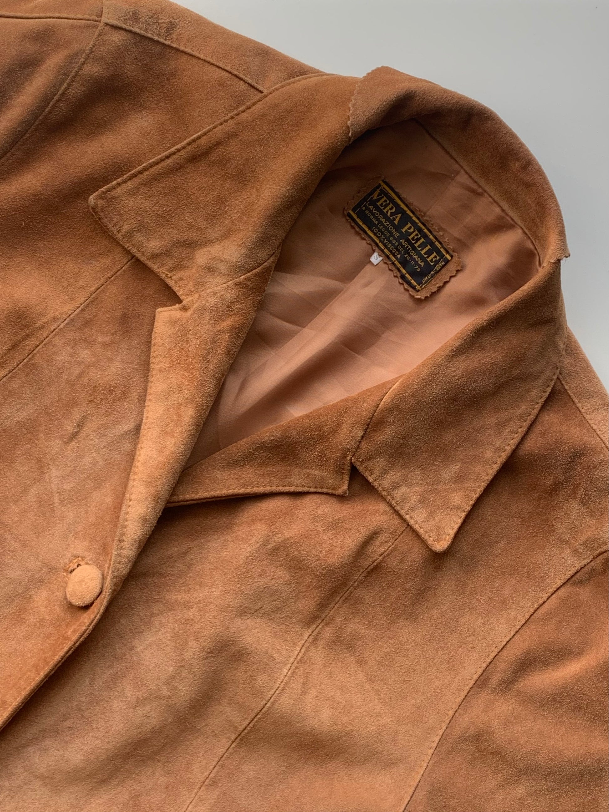 Dettagli: bellissima giacca/cappotto very vintage in vera pelle scamosciata color cognac