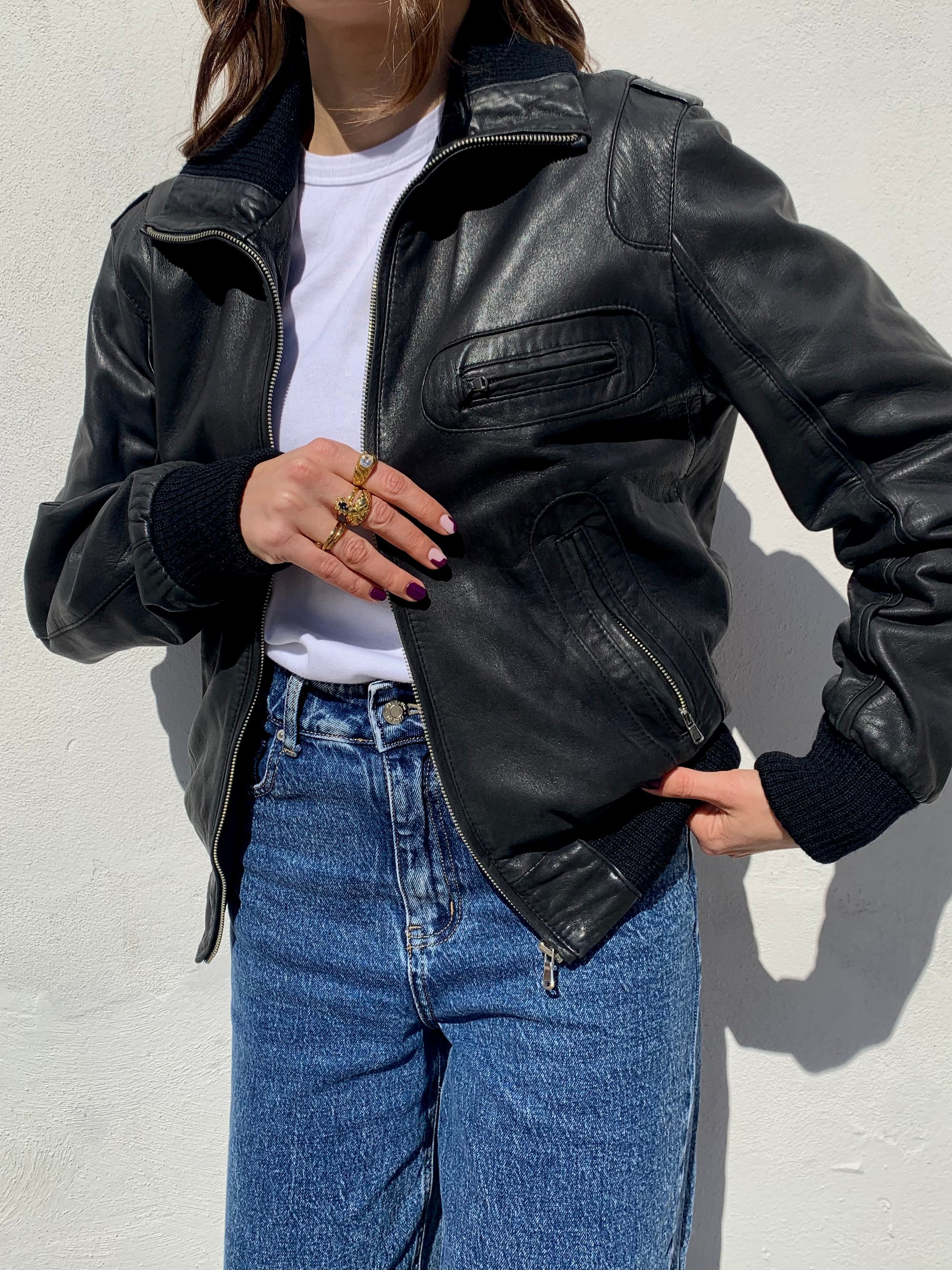 Dettagli: bellissima giacca vintage modello bomber in vera pelle nera