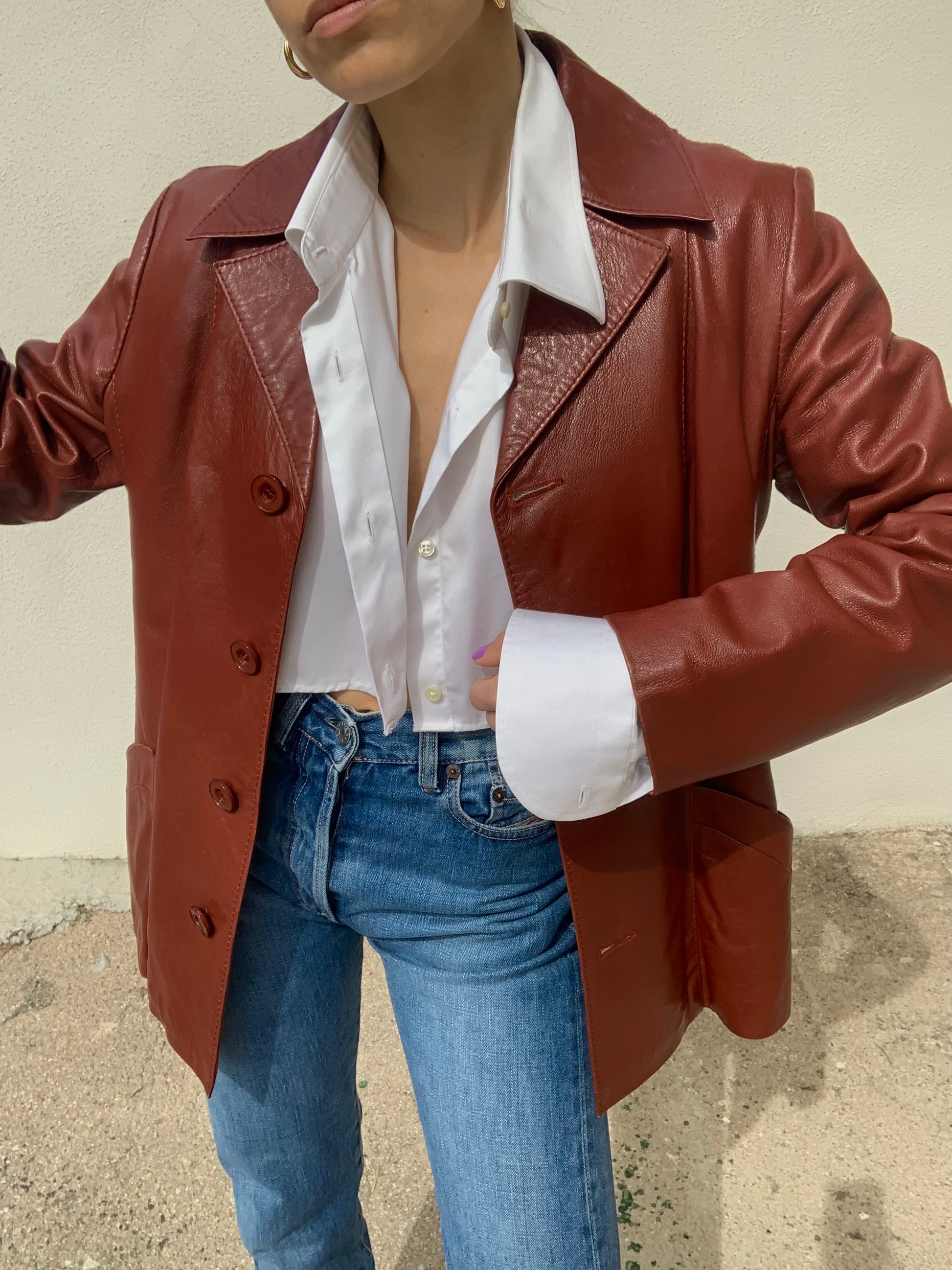 Dettagli: blazer/giacca vintage in vera pelle color bordeaux/vinaccia