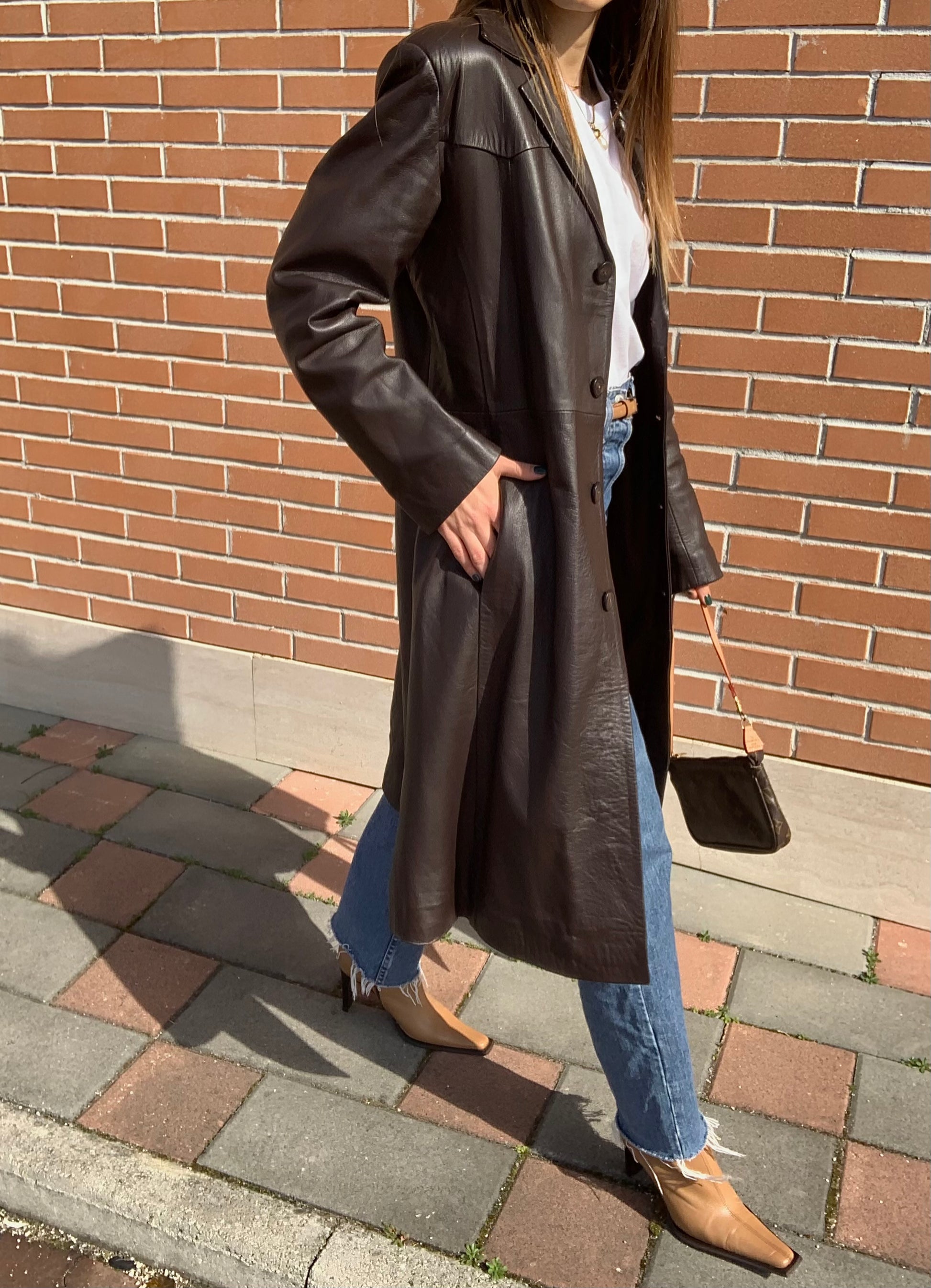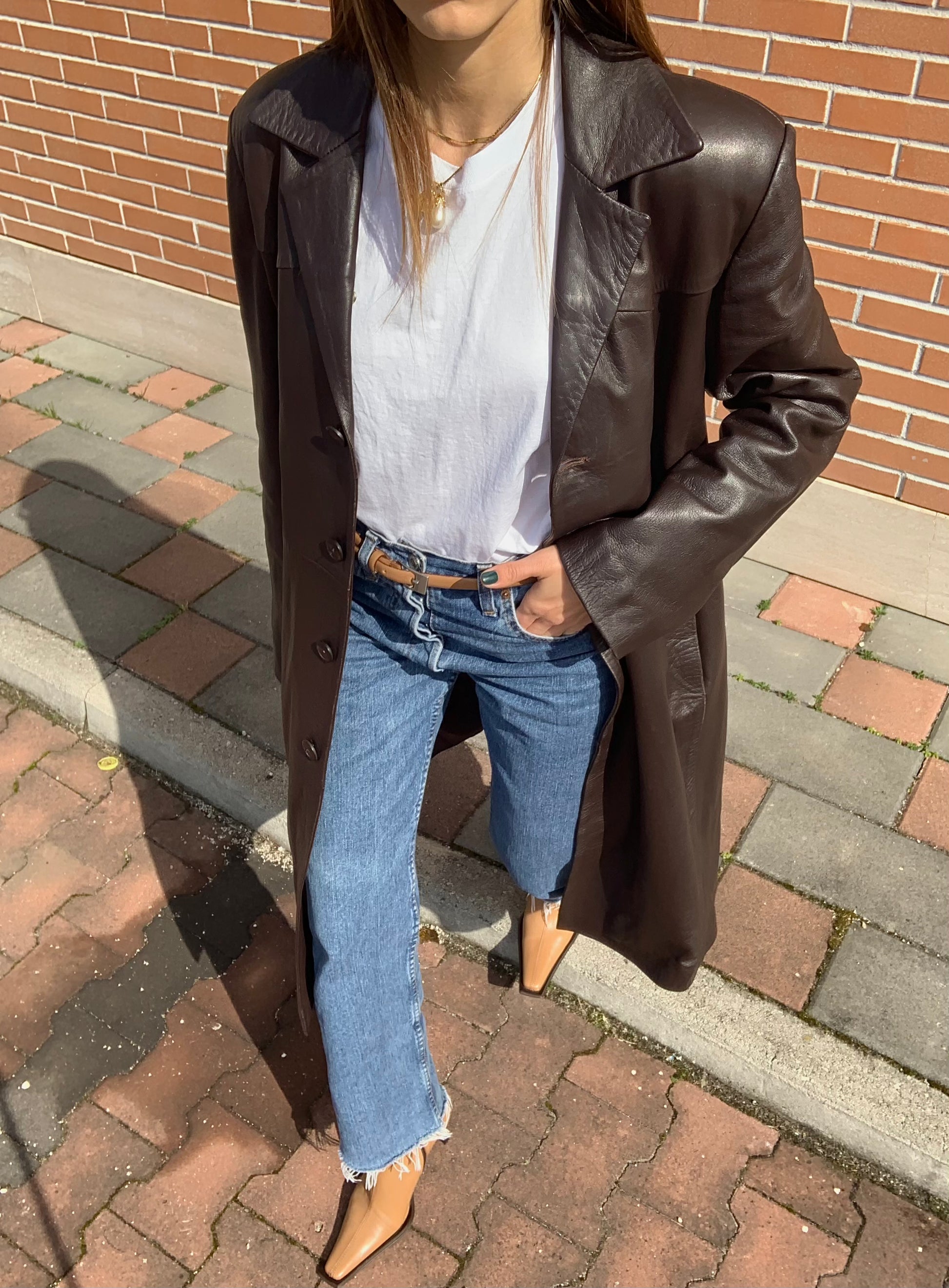 Dettagli: magnifica giacca/trench in vera pelle vintage