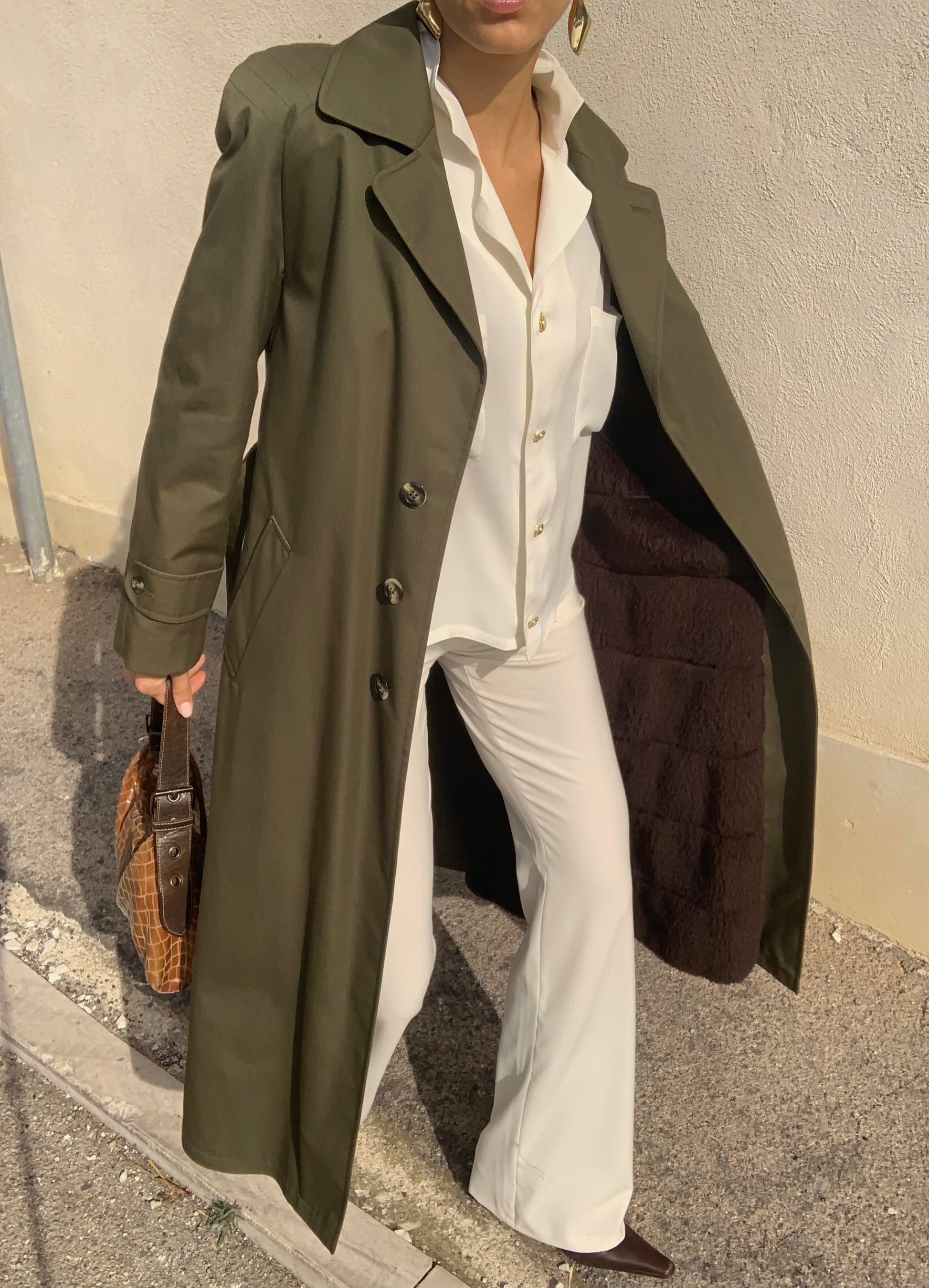 Dettagli: meraviglioso trench vintage, non il solito, di un bellissimo verde oliva
